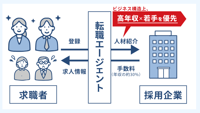 20~30代、高年収の人の方がエージェント側の利益になりやすいからです。