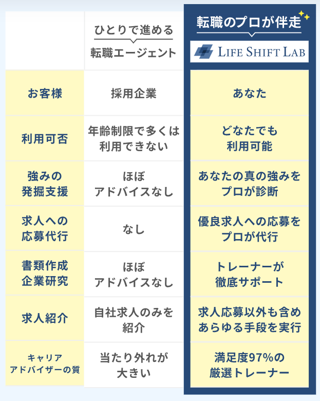 ライフシフトラボは、一般的に難易度が高いとされる40代以降の転職を