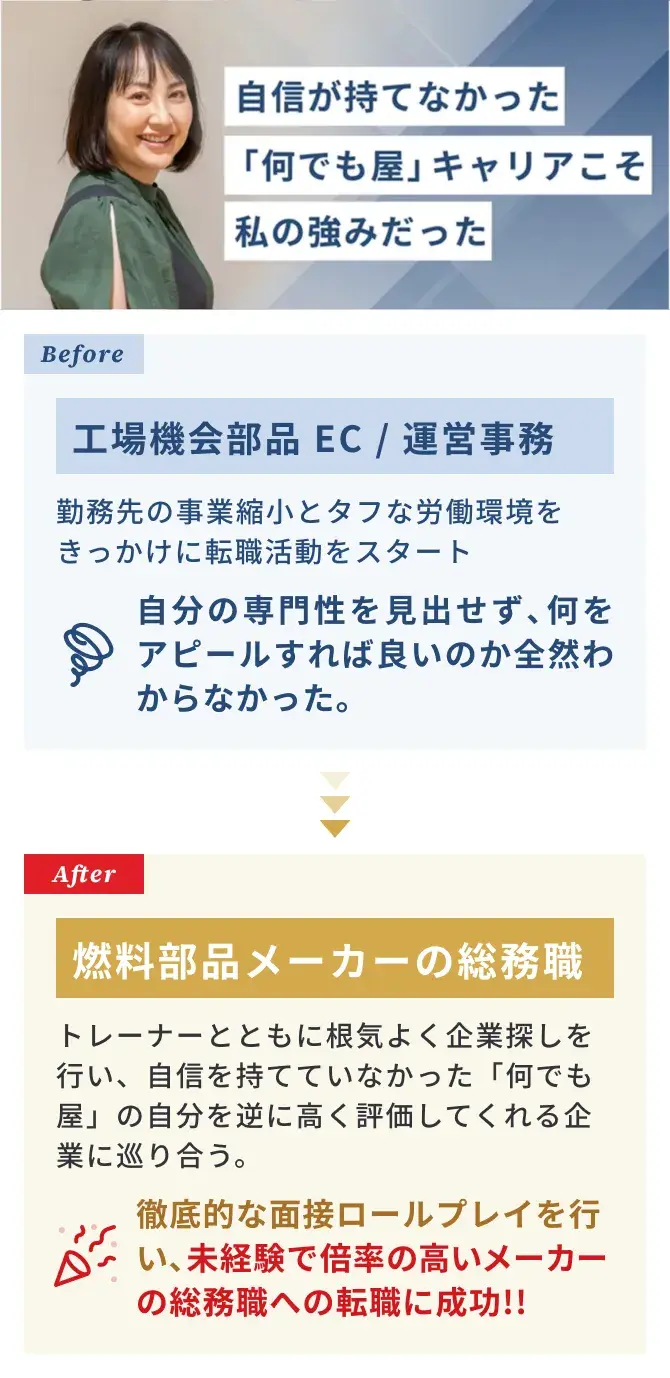 ミドル世代の転職マーケットを熟知したトレーナーが、あなたの強みを発掘!